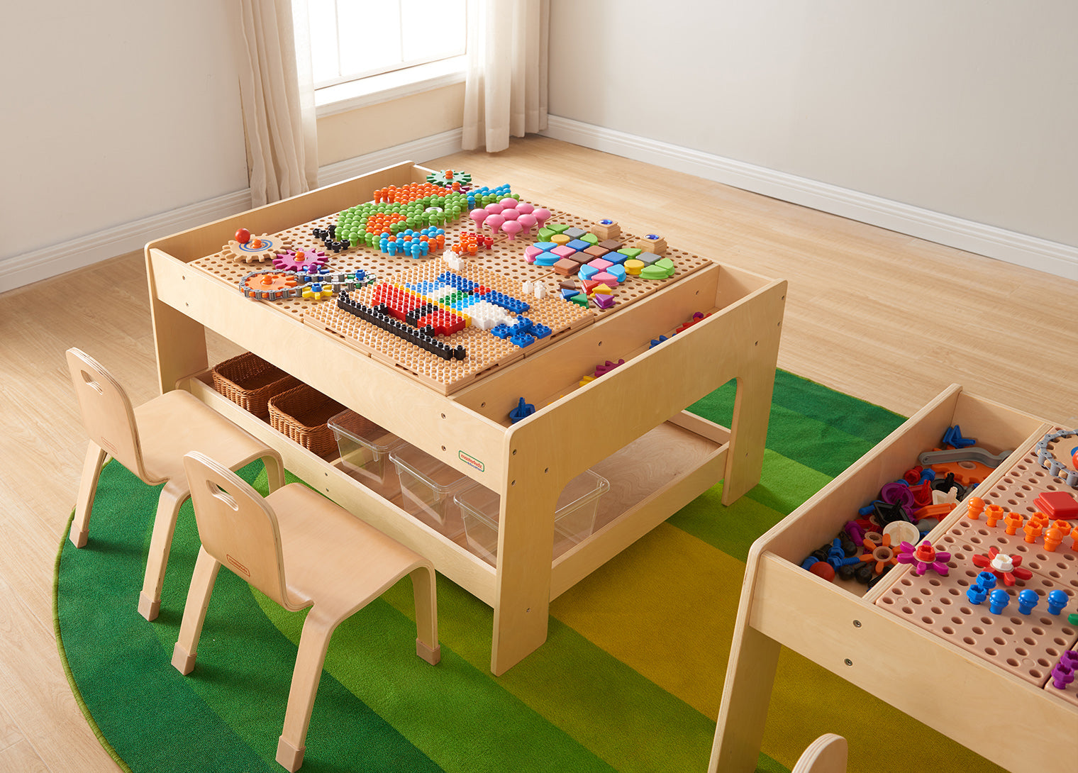 STEM 桌子是任何學前班或小學教室的理想設備,可配合 STEM 教材配件一起廣泛使用。 這些桌子堅固且足夠大,孩子們可以坐著或站著、單獨或成群地工作。 STEM 桌子堅固且以讓孩子們創造出實質的設計或解決方案。STEM 桌子為幼兒提供了搭建、探索和發現的完美區域,兩側的托盤更可輕鬆存放適合任務的組件。非常適合發展他們的精細運動技能和首次 STEM 體驗!對於年齡較大的孩子來說,這裡有足夠的空間來使用旋入式齒輪、滑輪、驅動器等創建工作機械模型。還有支架可以添加垂直牆,以便也在 3 維中建造工程項目!