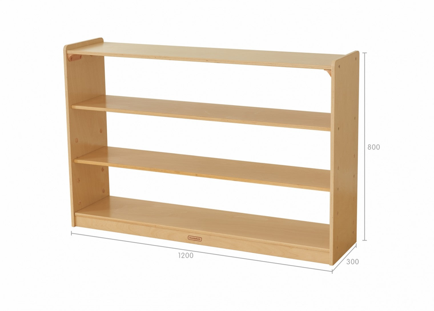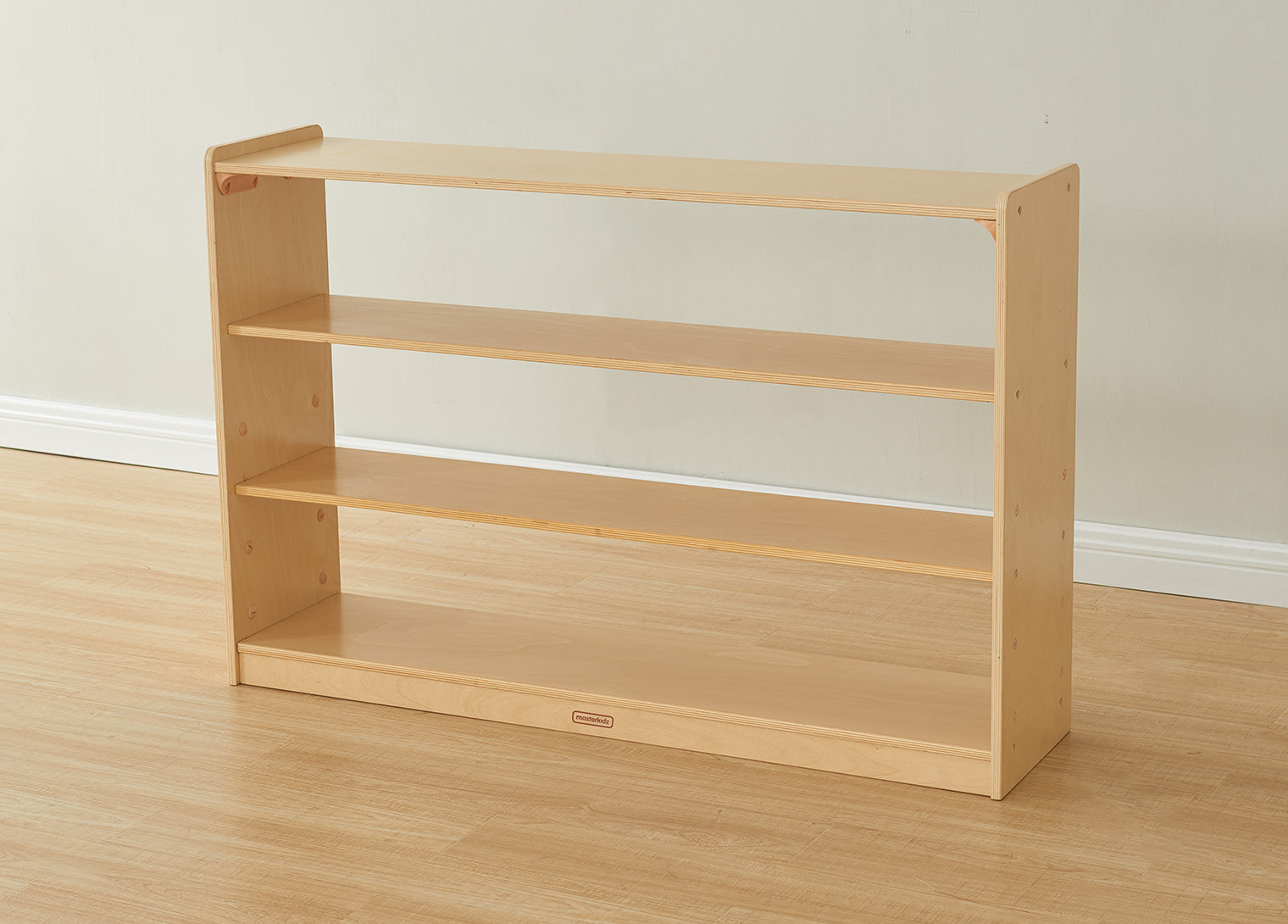 這款大型三層展示架由耐用的樺木夾板製成,是教室中不可或缺的儲物單元,經過高水準的加工處理,靜態承重可達200磅,非常適合存放書籍、資源、玩具、展示物品或教學主題展示。邊角經過圓滑處理,並塗有多層保護漆,確保表面長期耐用,便於清潔。
